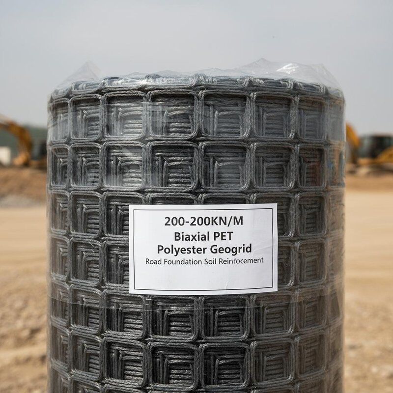 200-200KN/M Biaxial PET Polyester Geogrid Road Foundation Soil Reinforcement