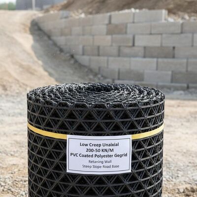 Low Creep Uniaxial 200-50 KN/M PVC Coated Polyester Geogrid Retaining Wall Steep Slop Road Base
